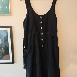 Svart byxa med fickor. Byxan har en dragkedja och knapp framtill. Byxan har två fickor på framsidan och två fickor på baksidan. Byxan har även två fickor på benen. Byxan är i bra skick.