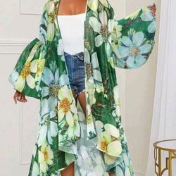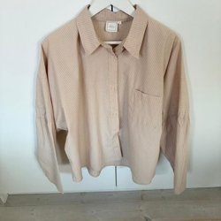 Khakifärgad skjorta st L med långa ärmar, knappar framtill och två bröstfickor. En ficka på vänster arm.