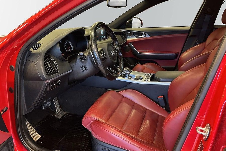 In i lager kommer en Kia Stinger GT AWD 3.3 V6 T-GDI AWD Automatisk med 370hk från 2018. En riktig prestandabil med en sportig själ och komfort i premiumklass. Kia Stinger GT är för dig som vill ha kraftfull acceleration, dynamisk väghållning och känslan av sportbil- men i ett fyrsitsigt format som funkar lika bra i vardagen som på långresor. Den kraftfulla V6-motorn på 370 hk och den smidiga automatlådan levererar imponerande acceleration och respons, medan AWD-fyrhjulsdriften ger stabilitet och trygg greppförmåga i alla lägen. Stinger GT känns både explosiv och kontrollerad, med en körupplevelse som får varje tur att kännas mer engagerande. Invändigt möts du av en kupé med sportig premiumkänsla, hög komfort och genomtänkt ergonomi. Stolarna sitter stabilt, materialen känns påkostade och allt är utformat för att hålla både förare och passagerare nöjda- oavsett om det är vardagens pendling eller helgens tempoökning. En kraftfull, elegant och körglad sportbil som kombinerar prestanda med komfort- perfekt för dig som vill ha lite mer av allt.