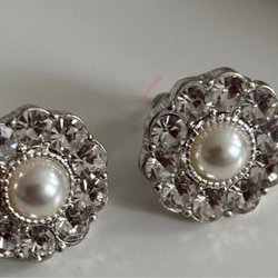 Ett par clip-on örhängen med en mörk sten i mitten omgiven av mindre stenar. Använda ett fåtal gånger.