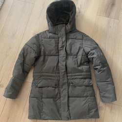 Jackan är använd men i fint skick. Inget trasigt, men lite noppigt i de inre ärmsluten (syns inte utanpå, se bild) och lite i kragen.