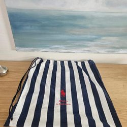 Finns spår (trådar) upptill, efter ringar som varit fastsydda för upphängning.