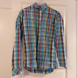 Jeans från Rocky med hög midja och raka ben. Byxorna har en klassisk design med fem fickor, bälteshällor och gylf med dragkedja och knappstängning. Fållarna är råa och fransiga, vilket ger en avslappnad look. Storlek saknas men upplever dem som en avslappnad S eller tajtare M.