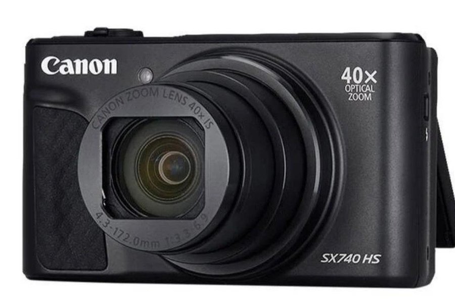 Kompakt digitalkamera med 40x optisk zoom. Kameran har en svart finish och är utrustad med en Canon zoomlins.