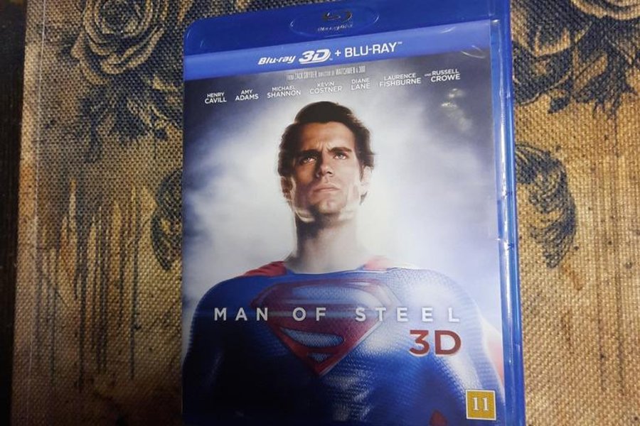 Blu-ray 3D-utgåva av filmen Man of Steel. Med Henry Cavill, Amy Adams och Michael Shannon.