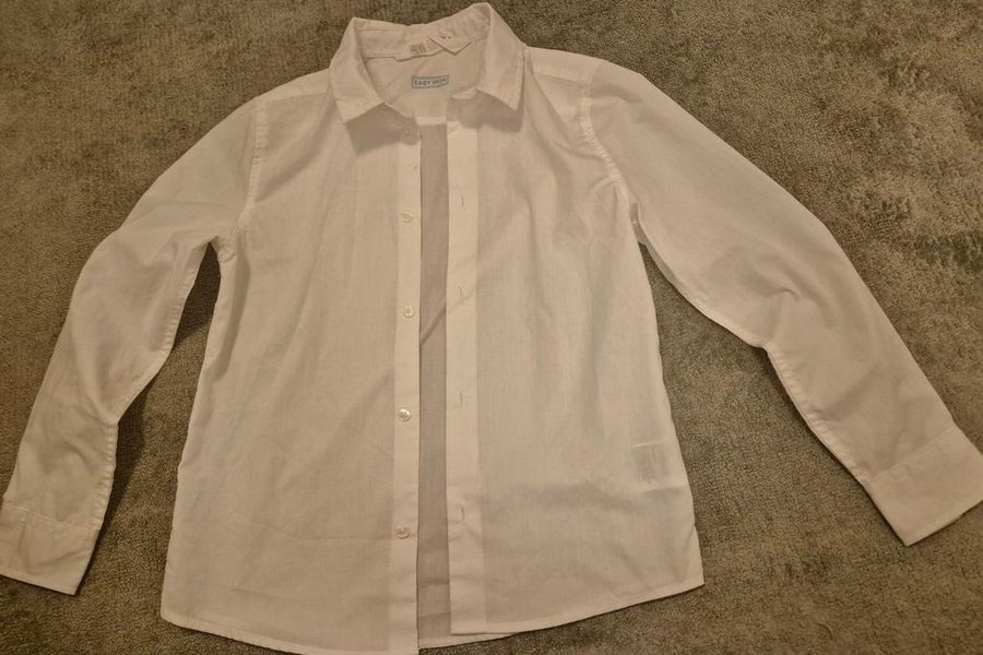 En vit skjorta med långa ärmar och knäppning framtill. Skjortan har en klassisk krage och manschetter vid ärmsluten. Easy Iron. Storlek 128.